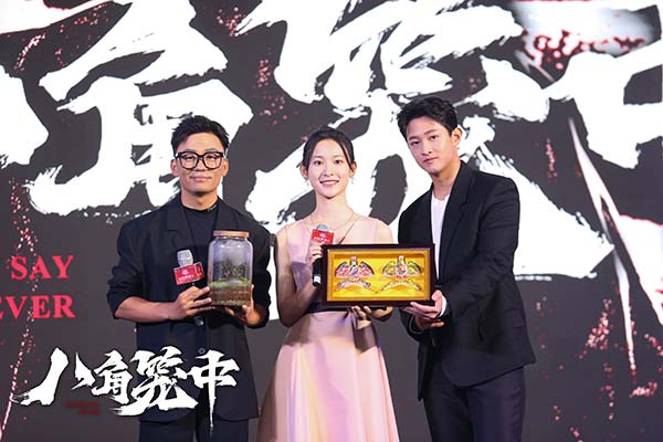 当天活动是《八角笼中》剧组继杀青后的首次重聚,时隔半年的时间再次碰面,主创们都十分兴奋。推介会上,王宝强称其时隔六年再执导筒,是想创造出一个属于中国本土的好故事,同时在现场发自肺腑地感谢了观众对他的认可,并表示:“观众的的认可就是我拍电影的意义和价值所在。”主演史彭元也热情表白导演王宝强,称自己是看着他作品长大的,王宝强在他心中是“全能演员”的代表。王宝强也趣味回应:“希望你未来也是‘多功能演员’。”活动现场,史彭元与张祎曈还为王宝强送上“生命之树”作为礼物,感谢王宝强如大树般的守护。王宝强也回送两位演员燕子风筝,祝福对方越飞越高,同时笑称自己在新片中做的是一个“放风筝的人”,一直牵挂着飞得越来越远的孩子们。同时王宝强也对两位年轻演员在戏中的表现都给予了很高的评价,称赞17岁的史彭元在形象、技能、性格上都是他心目中的“苏木”,而新人演员张祎曈对人物的把控及眼神中的真诚也令人惊喜。