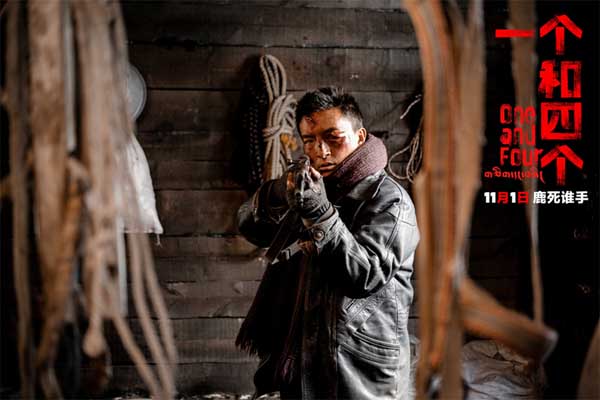 电影《一个和四个》以荒原雪林为背景,讲述了暴风雪来临之际,三名不速之客闯进了护林员的木屋,并由此牵涉出一件真相不明的盗猎案件。影片里一位自称是森林公安的陌生男子(王铮 饰)来到了护林员桑杰(金巴 饰)的小木屋中,在此埋伏并抓走了疑似盗猎接头人的同乡根宝(更旦 饰)。桑杰还未从震惊中缓过神来,另一位男子(达杰丁增 饰)持枪闯入,表示自己才是真正的公安。一时间,真相扑朔迷离,密林杀机四起......今日发布的定档预告中,冲击力极强的镜头语言下隐隐传递出暴戾与不安,风雪之中尔虞我诈,难忍猜忌之心的四人各怀鬼胎。险象环生之间,善恶难辨、洞见人心!