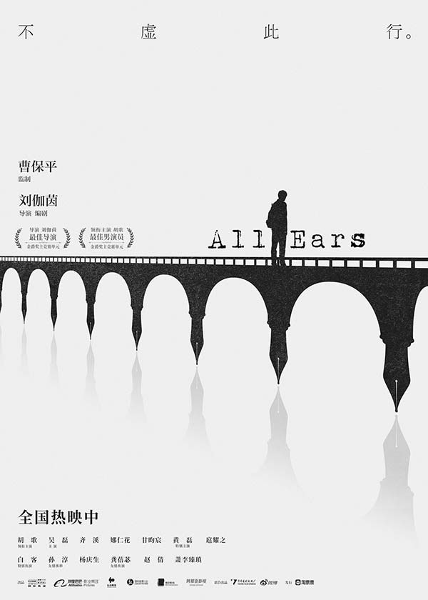 今日,《不虚此行》同时还发布了“笔落人间”海报。海报里,一座由笔构成的桥梁架起了整个画面,而闻善站在这座桥梁上方。这象征着闻善的一生正是被写作填满,而这座桥梁也是沟通生者与逝者、过往与未来的媒介,闻善的书写使他成为了一个“摆渡人”,渡人渡己。