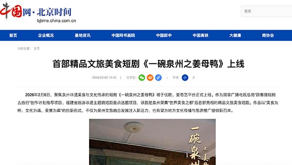 近日,泉州荣膺“世界美食之都”后首部精品文旅美食短剧《一碗泉州之姜母鸭》正式上线。剧集凭借鲜活的本土故事、浓郁的非遗风味和暖心的市井情怀,引发福建及中央各级官方媒体集中关注与报道。中新社、中国网、东南网、福建日报、学习强国、泉州晚报、东南早报等权威媒体和平台纷纷刊发新闻内容,泉州发布、海丝泉州文旅之声等官方新媒体同步推送,形成线上线下联动、传统媒体与新媒体共振的传播热潮。