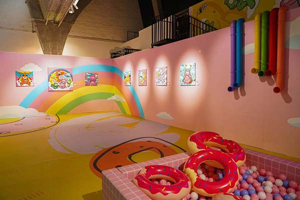 本次展览还秉承了“靠边走艺术空间”一直以来所倡导的互动性和观众的参与性。在展览现场,观众可以领到一只无色的甜甜圈。这不仅是一个简单的观展纪念品,更是一个观众可以展开想象,继续创作的原料。在欣赏了Mr.Likey的作品之后,观众肯定会激发出不少创作灵感。因此,在展厅出口的位置,空间特意为大家提供了创作甜甜圈的超轻粘土。希望能看到你创意无限的作品。