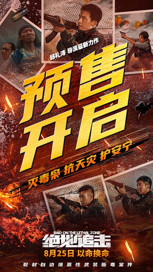 取材自边境恶性武装贩毒案件,由邱礼涛监制并执导,欧豪、谷嘉诚、俞灏明、阿如那、黄尧领衔主演的犯罪灾难电影《绝地追击》将于8月25日全国上映,目前预售已开启。今日,影片发布了“向死而生”版终极预告及海报。预告中,毒贩为躲避武警边防战士与缉毒警察的追捕,借洪水分散警力趁机运毒。8077边防武警特战队陷入双重威胁的致命绝境,但战士们依然坚持追捕毒贩直到生命的最后一刻。在灭毒贩战天灾的过程中战士们伤亡惨重,三队出发最后仅剩三人生还。平均年龄仅23岁的他们为守住最后的防线无畏死亡,这份精神引无数观众泪目。而今日曝光的特别海报中触目惊心的数字,也进一步证明武警边防战士们的每一次缉毒行动都堪称殊死血战。