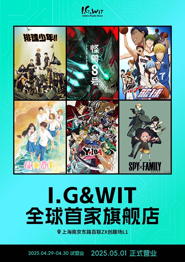 即将落地于上海百联ZX创趣场的Production I.G&WIT STUDIO线下店,为Production I.G&WIT STUDIO全球首家IP周边售卖旗舰店,同时还将汇聚《进击的巨人(Season1~3)》《间谍过家家》《排球少年!!》《YAIBA》《xxxHOLiC》系列《攻壳机动队》系列《黑子的篮球》《罪恶王冠》《怪兽8号》《银河英雄传说:全新命题》《好想告诉你》多个热门动画IP周边商品,为广大二次元粉丝打造“集合式”商品购物体验。