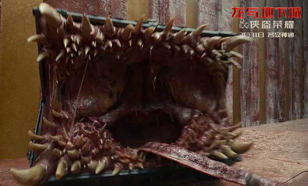 在噬脑怪和红龙之外,两大《龙与地下城》的标志性怪物则暗藏在斗兽场的迷宫之中,时刻准备着给予侠盗小队致命一击。通体漆黑,尖牙利爪的蛇豹凶神恶煞,压迫感十足,生长在两肩上的修长触须是它最致命的武器。凭借这两条触须的奇异功能,蛇豹化身顶级杀手,夺命无形。同样在猝不及防间置人于绝境的,是变幻无常、善于伪装的宝箱怪,这种表里不一的怪物常常使人在瞬间经历希望到绝望。值得一提的是,为了达到更真实的效果,影片团队打造出了宝箱怪的长舌模型,让米歇尔·罗德里格兹与宝箱怪的“搏斗”更加紧张刺激。