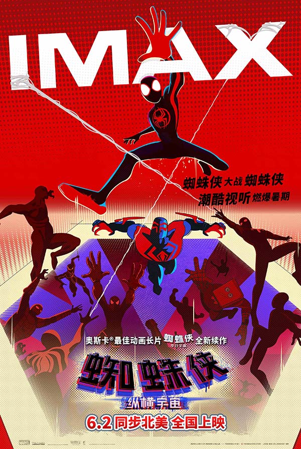 登顶《帝国》杂志“影史最佳动画第一名”、奥斯卡最佳动画长片《蜘蛛侠:平行宇宙》全新续作《蜘蛛侠:纵横宇宙》将以CINITY、CGS中国巨幕、IMAX、杜比、4DX多种制式登陆全国院线,五款制式海报震撼曝光。蜘蛛侠动画电影系列的独创画风,多元宇宙的视觉奇观,百蛛大战的画面冲击,将给观众带来极致的大银幕视听体验。影片将于6月2日登陆全国大银幕,与北美同步上映,敬请期待。