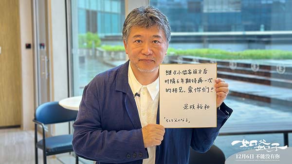 是枝裕和导演于前方发来给中国观众的亲笔手写信,以及特别寄语视频。导演在手写信中写道:“继《小偷家族》时隔6年后的再一次相见,爱你们!!”,并且在寄语视频中表示:“六年前在中国上映的《小偷家族》得到了大家非常暖心的反馈,非常荣幸。这次也希望大家能多多支持《如父如子》。”这部影片是继《小偷家族》后,是枝裕和导演的又一口碑神作再登中国大银幕。《如父如子》在豆瓣上已有超16万人打出8.7分的超高分数。时隔六年的再一次相会,是枝裕和导演带着对中国观众满满的热情与诚意,以最真诚的姿态,带着最优质的作品,回馈中国观众的喜爱。