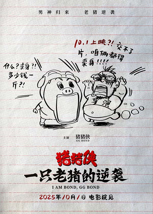 跟随现场定档消息的重磅公布,影片紧随其后发布了定档国庆的手绘海报,整体画风十分抽象,画面中导演和猪猪侠的对话更是喜感满满。导演抓狂的表情配合台词:10.1上映?!交不了片,咱俩都得卖身!!!猪猪侠则满脸震惊地回应:什么?卖身?多少钱一斤?!充满了打工人疯癫的精神状态。据悉,本次影片故事也是围绕“打工老猪的逆袭”而展开的,主要讲述了过气演员猪猪爆怀揣着对演艺梦想的执着,一心想要咸鱼翻身的搞笑故事。片中融入了底层打工人追梦的辛酸、演艺圈八卦热点等接近年轻观众生活的话题,给大家带来更深的代入感。初代猪猪侠陪伴着无数人度过了童年美好的时光,近期通过抽象风表情包再度走进大众视野后,让大家对顶流猪更加热情,童年男神本次的回归,不仅承载着一代人的记忆,也唤醒了大家的情感共鸣。
