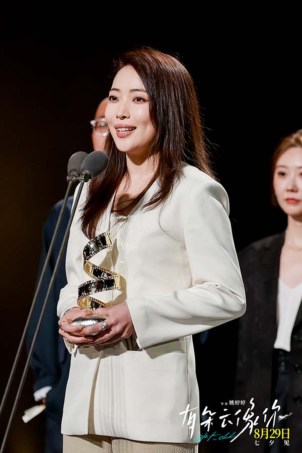 6月17日,上海国际电影节华语巨制巡礼活动现场,导演姚婷婷与领衔主演屈楚萧登台发言,介绍电影《有朵云像你》的创作理念。姚婷婷表示,“云"是她心中对于爱情最好的注解,因为“云”可以是恒定的守护、细腻的陪伴,同时也有化成大雨,倾泻而下的力量,就像故事中这对爱人,既有温柔的爱意,也有敢爱的勇气与奔赴的决心。屈楚萧则分享了角色秦天“重生归来”的设定,也向观众发出观影邀约:“如果大家好奇有一天起床面对一个突然年轻了8岁的重生爱人能有多幸福,那就在七夕去电影院看电影《有朵云像你》。”