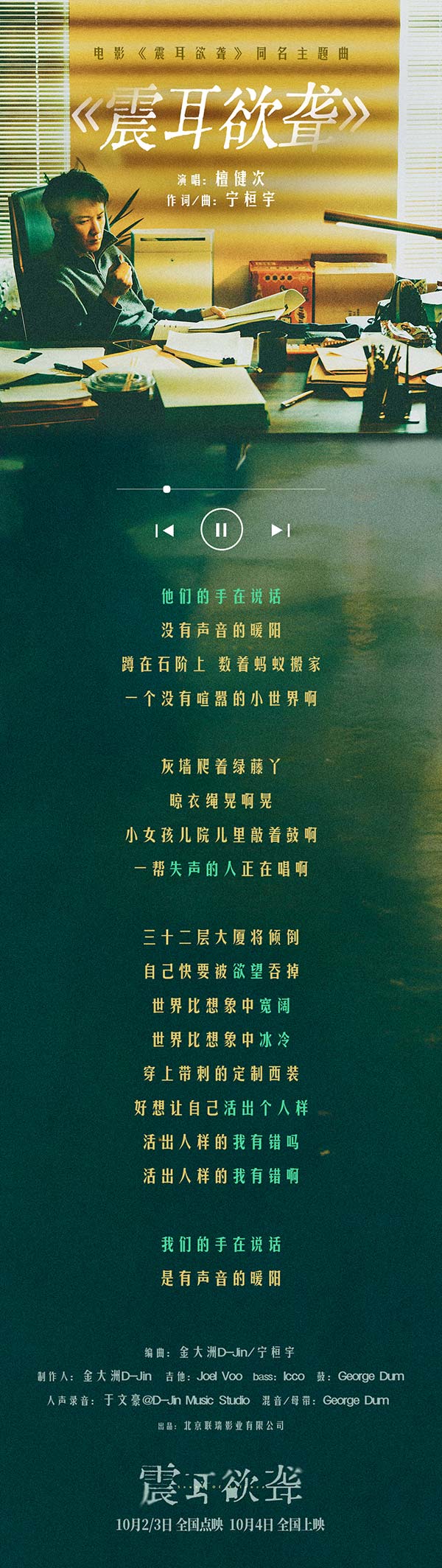 电影《震耳欲聋》正式发布同名主题曲《震耳欲聋》MV,由领衔主演檀健次倾情献唱,宁桓宇作词作曲。MV以细腻镜头语言呈现了灰度律师李淇与聋人群体从疏离到守护的动人故事,歌词”好想让自己活出个人样“道出无数小人物的心酸与渴望,而“我们的手在说话,是有声音的暖阳”则传递出“无声”的温暖力量。同时,本片已于今日14:00正式开启点映,据悉,影片首轮路演已圆满落幕,多地观众表示“这是今年最值得看的现实题材电影”。