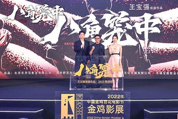 王宝强新作叩问人心 活动现场互送礼物
