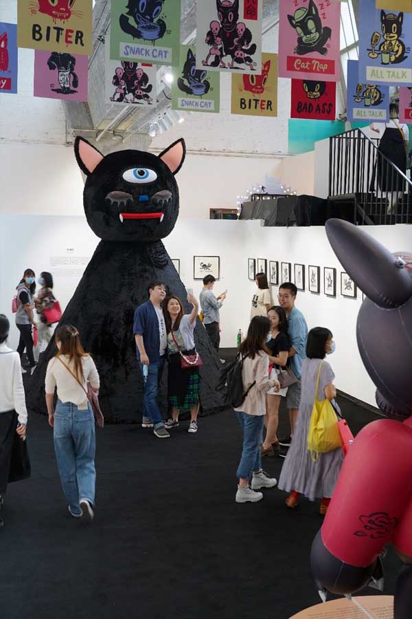 国际知名波普超现实主义艺术家盖瑞·贝斯曼(Gary Baseman)带着他的新展“猫有九条命”再次回到中国。2022年9月30日,靠边走艺术空间的年度大展“猫有九条命-盖瑞·贝斯曼个人作品展”借着一场VIP兼媒体提前观展日的活动正式与中国观众见面。在过去的 “十一”假期中,这只长久陪伴着艺术家、启发了他无数灵感和创意的黑猫Blackie不仅为包括著名艺评人陆蓉之在内的业界人士带来一场尽兴的展览,贝斯曼对小猫难以割舍的情感也打动了无数到场的大小观众。