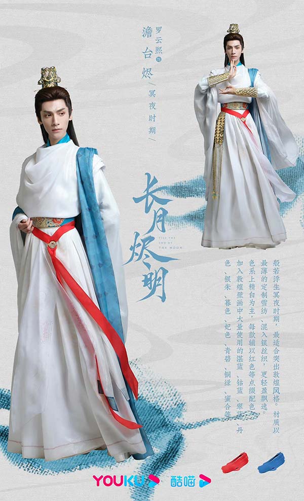 在最新剧情中,蚌族公主桑酒爱上了战神冥夜,两人踏入般若浮生之梦,服化道也随着人物身份与性格发生了转变。战神冥夜的服饰常服采用了敦煌壁画常见的蓝白配色,战甲则是精致考究的银色铠甲配搭披风披帛,昂扬潇洒又颇具神性之美,充分展示出人物性格的沉着冷静。桑酒的服饰则以浪漫绮丽的敦煌风为主,同时融以贝壳、珍珠等元素的细节点缀以凸显蚌族小公主的身份。