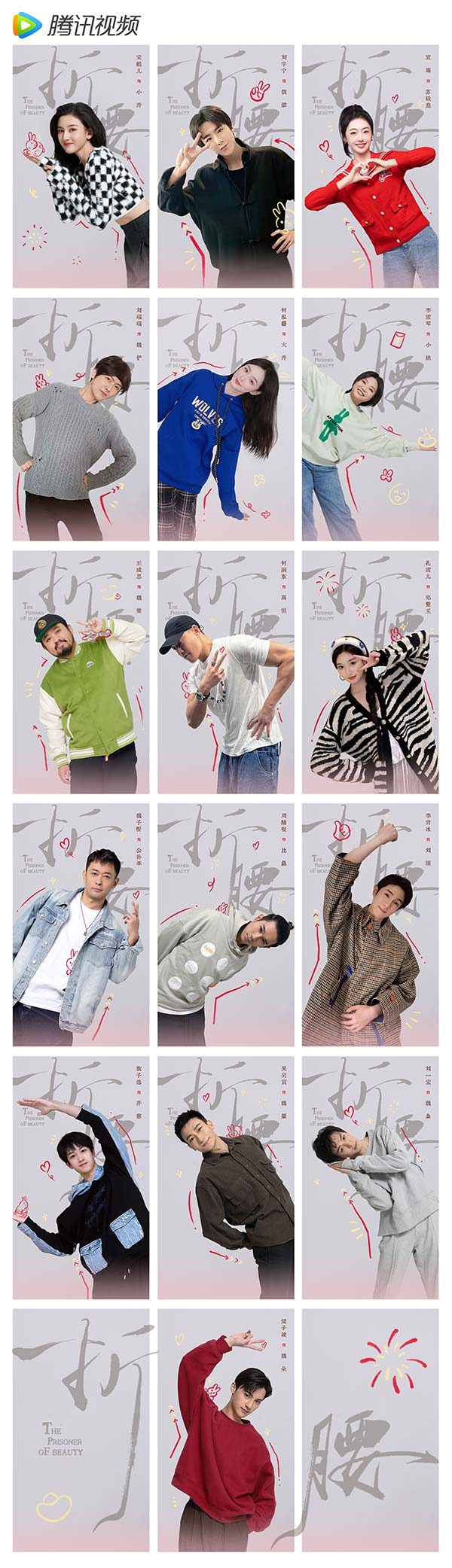 当天释出的现场图中,众主创悉数到场参加开机仪式,正值新年开春好时节,现场气氛一派融洽热闹。此外,该剧还发布了一组主演“折腰”创意组图,图中的主演们都分别用自己的方式诠释“折腰”这个主题,整体视觉上俏皮可爱,同时也巧妙贴合了剧名,令人印象深刻,并引发网友热议。